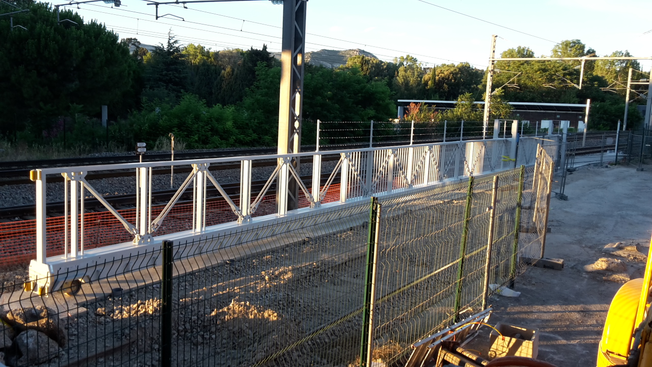 Livraison délicate et sensible directement sur un chantier SNCF difficile d’accès, le trafic a été stoppé. La livraison avec pose assistée de ce portail s’est déroulé de nuit.