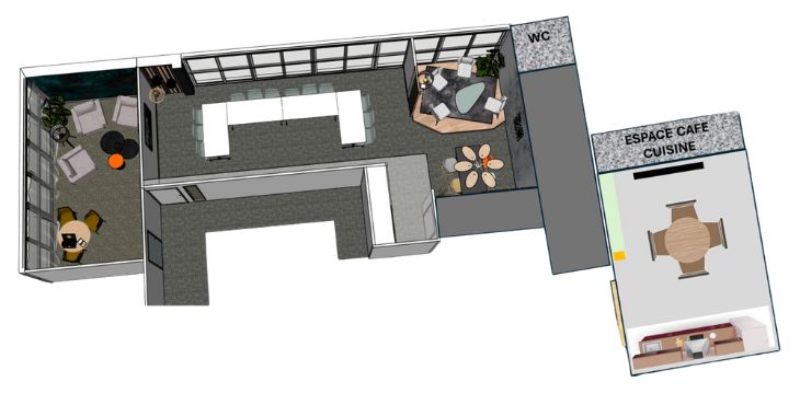 D’une surface de 60 m², modulable avec 2 espaces de travail en mini-groupe, notre salle peut accueillir jusqu’à 14 personnes.