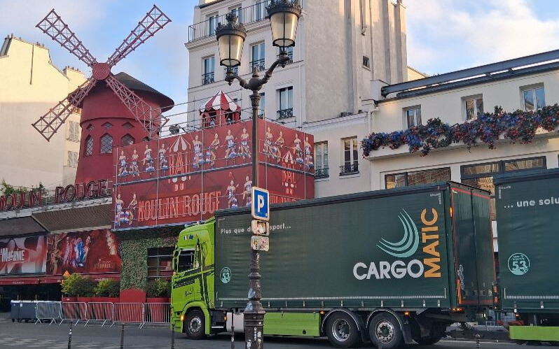 ➡️ Positionnement son camion remorque au pied du Moulin Rouge