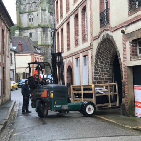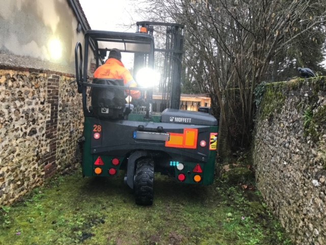 Une nouvelle livraison sensible 🚛, celle d’une piscine 🏊‍♀️, effectuée avec chariot élévateur en empruntant des accès très étroit 🔛 ❗️