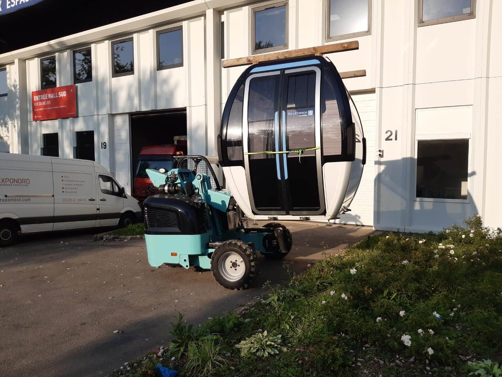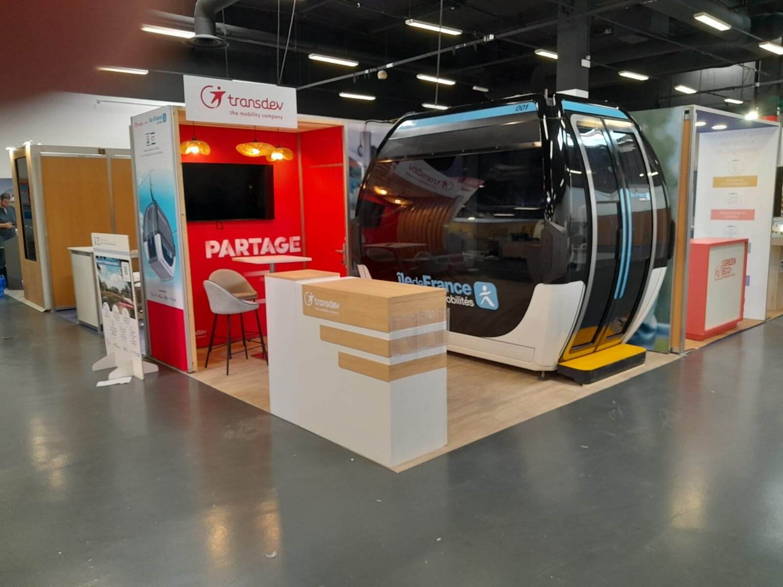 ? Après le salon de l’AMIF (Association des Maires d’Iles de France) en mai dernier, Pierre-Marie nous partage le nouveau transport ? d’une cabine téléphérique? directement sur un stand pour le salon des Maires du 94 qui s’est tenu en septembre dans le cadre du projet ? « Temps durable« *
